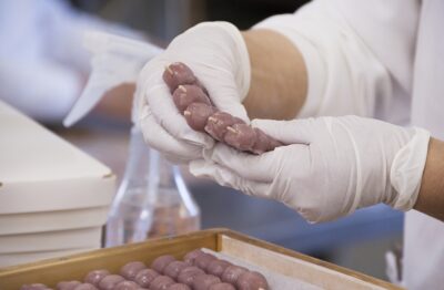 古賀「小豆もしっかり感じられるように『北海道産の小豆』を使用し、あえて『皮を残して』作っています。それでいて、ほのか?に『葡萄饅頭らしさ』を残すこと。これにこだわって作りました。」